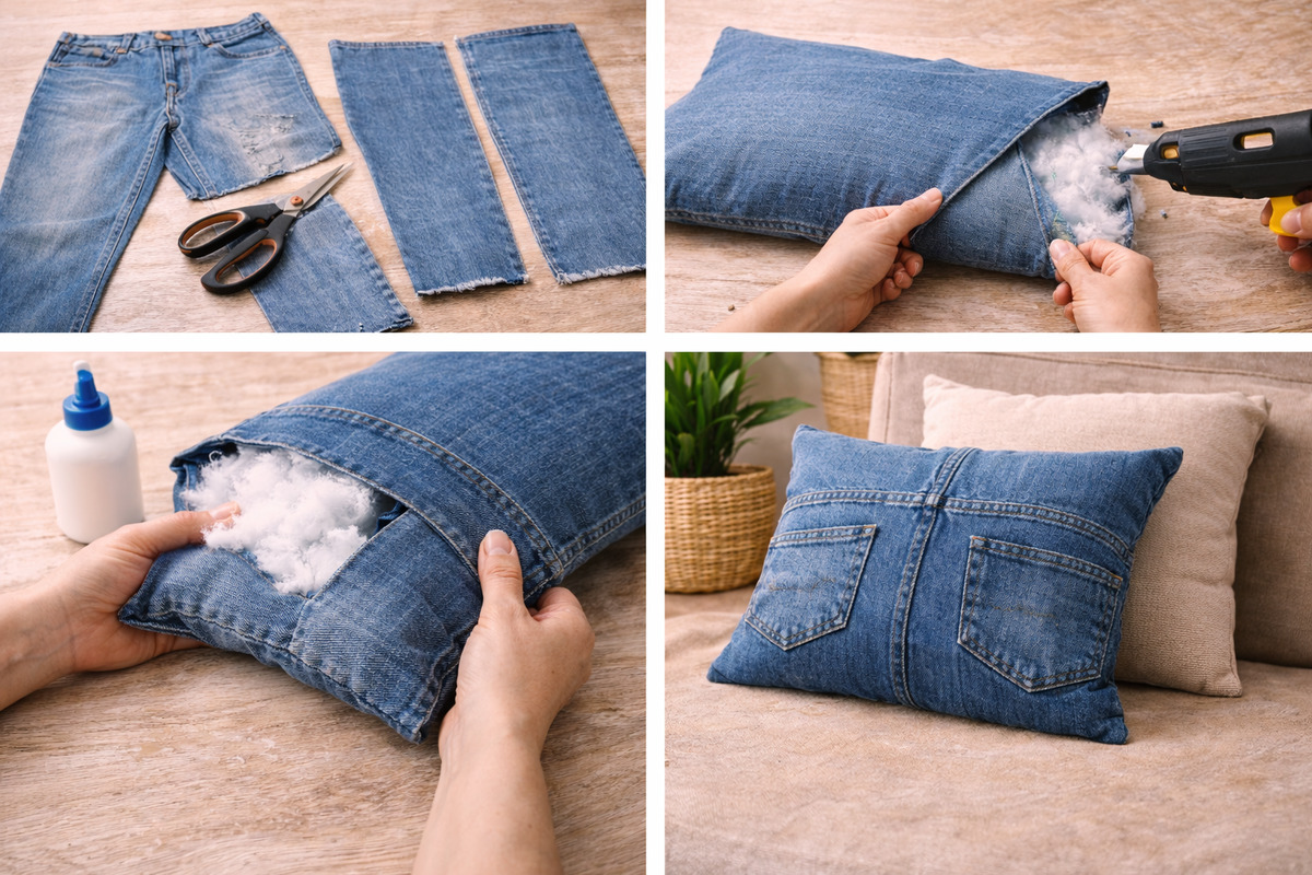 Способ пятый: ленивая подушка из джинсовых карманов