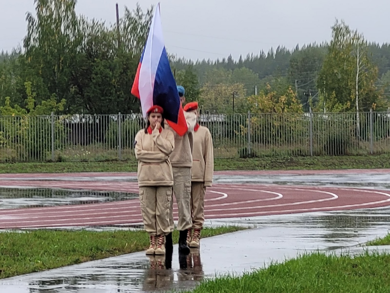 Дождь не помешал атмосфере праздника. После выноса Государственного флага Российской Федерации прозвучал гимн страны. А затем в поздравлениями к собравшимся обратились известные в городе лица.